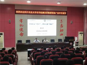 25日下午,全体党员前往邓小平同志母校广安中学,参观了全国新时期党性教育基地——广安中学校史馆。党员同志们共同参观了校史馆“历世纪沧桑,建百年名校”、“桃李满天下,伟人在其中”、“风清气自正,精英遍神州”等三个展厅和小平复原教室,详细了解了学校的办学历史和办学成绩,真切感受了小平同志母校师生在革命斗争、改革开放等伟大事业中做出的重要贡献,在政治思想上受到了洗礼。随后,全体党员同志与广安中学党委副书记余孝成、副校长杨松及教师代表等就两校协同育人进行了座谈;对进一步优化教育资源、提升教学质量、培养高素质人才等方面进行了深入的交流。生态农业研究所支部书记唐宗祥在该校勤政楼第二学术报告厅作了题为《守好农业“芯片”,捍卫大国“粮仓”》的专题讲座,围绕我国未来粮食安全面临的重大挑战进行了讲解,广安中学百余名师生代表聆听了讲座。