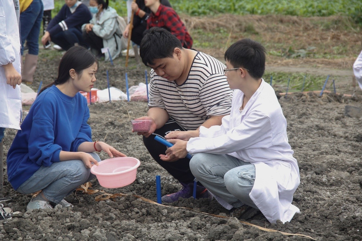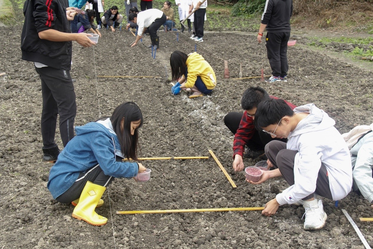 在启动仪式结束后,两校学生搭配分组,合作进行了小麦密度实验的开沟点种的整地、施肥、播种等工作。