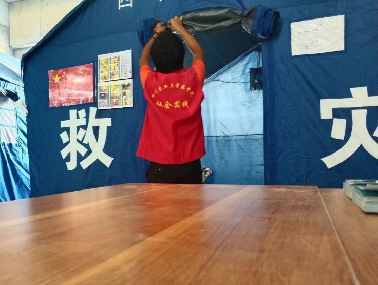 正值暑期社会实践期间,团队成员在姑咱镇鸳鸯坝进行康定市仙人掌产业融合科研科普示范基地的建设工作。面对突如其来的灾情,在保证自身安全的前提下,在确保科示范基地建设任务下,第一时间向学校汇报,向当地村委会请战,以志愿者的身份投入到抗汛救灾的前线。