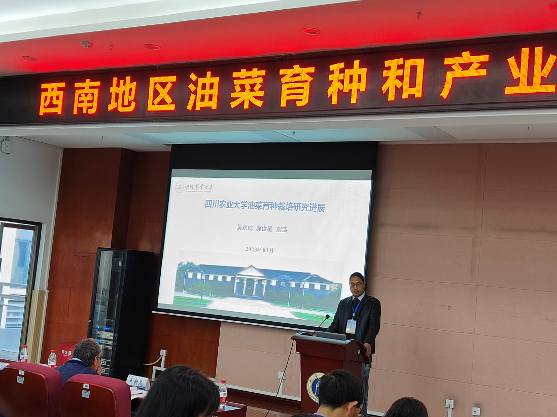 会上,吴永成教授代表我校油菜研究团队做了“四川农业大学油菜育种栽培研究进展”主题报告。该报告主要介绍了我校油菜研究团队的历史、人员组成及近几年在油菜育种和栽培科研上的主要成果。同时,来自重庆、四川、贵州、云南、陕西的多位油菜领域代表专家围绕油菜育种、产业发展和油菜研究新技术资源共享等方面展开了专题讨论。