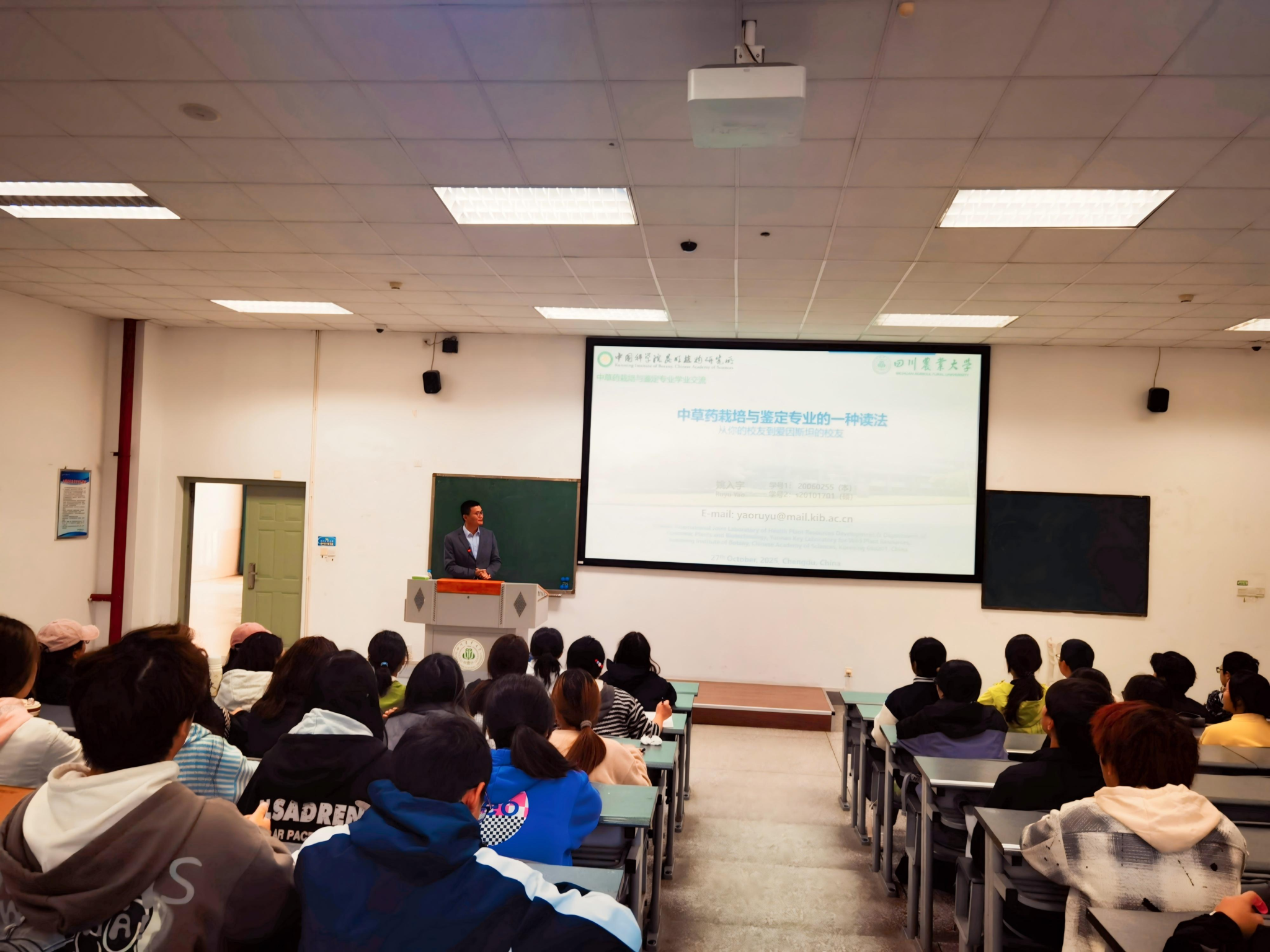 本次活动特邀2006级优秀校友、中国科学院昆明植物研究所副研究员姚入宇担任主讲嘉宾。姚入宇副研究员分享了自己从川农大求学起步,到进入顶尖科研机构深耕的成长与科研道路。他以亲身经历,生动讲述了在中草药研究领域探索的艰辛与乐趣,分享了科研工作中的创新思维与攻坚克难的心得体会。激励同学们传承“川农大精神”,在求知路上砥砺前行。并为学生们做了题为《从传统中医药本草著作的历史视角看中国的药食同源》的学术报告。讲述了枸杞、人参等为代表的药食同源植物基于传统应用的全球化历史和未来。长达两个多小时的讲述和交流,姚入宇学长用朴实又充满激情的话语,为在校师弟师妹们勾勒出一幅清晰的学业与职业发展蓝图,展现了专业领域的广阔前景与无限可能,引发了在场师生的强烈共鸣与深入思考。
