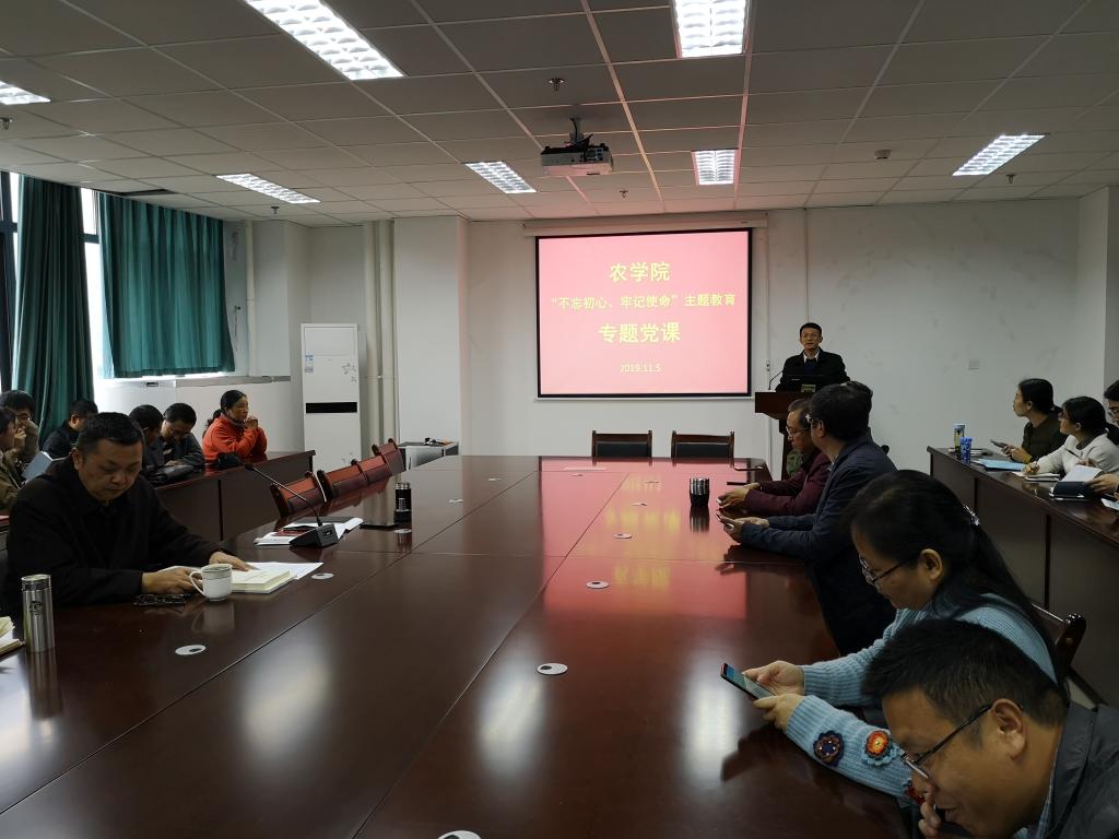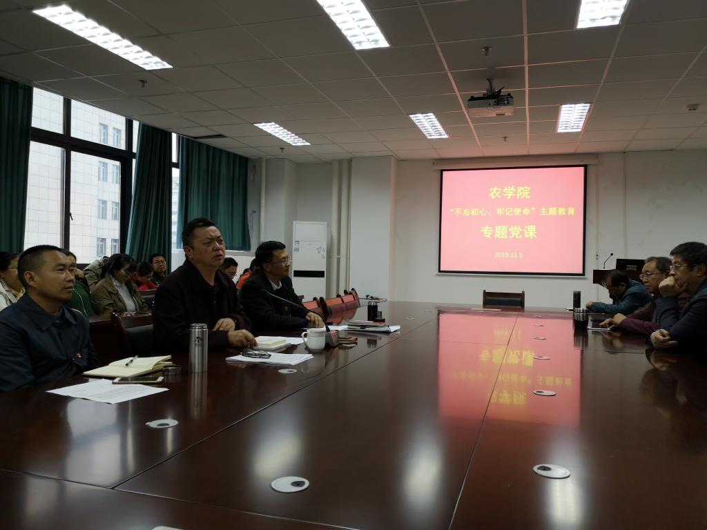 从9月份开始,开云在线注册(中国)登录入口“不忘初心、牢记使命”主题教育已全面展开。按照学校“不忘初心、牢记使命”主题教育的工作安排,学院领导已分别于10月为联系的党支部党员上党课,11月5日,开云在线注册(中国)登录入口领导在7教405会议室,再次为全院教师党员讲专题党课。