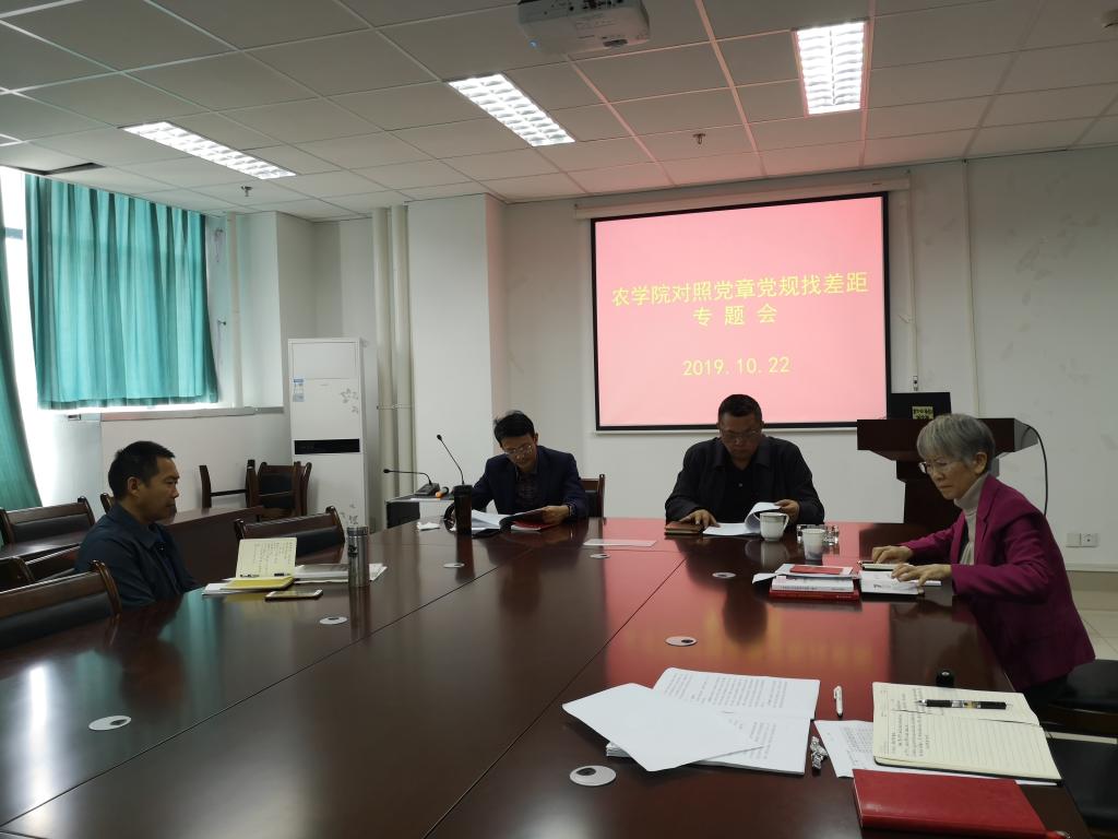 会议按照学校《关于在“不忘初心、牢记使命”主题教育中对照党章党规找差距的实施方案》要求,以正视问题的自觉和刀刃向内的勇气,对照党章党规找差距,认真全面查找和解决各种违背初心使命的问题,明确努力方向和整改措施。