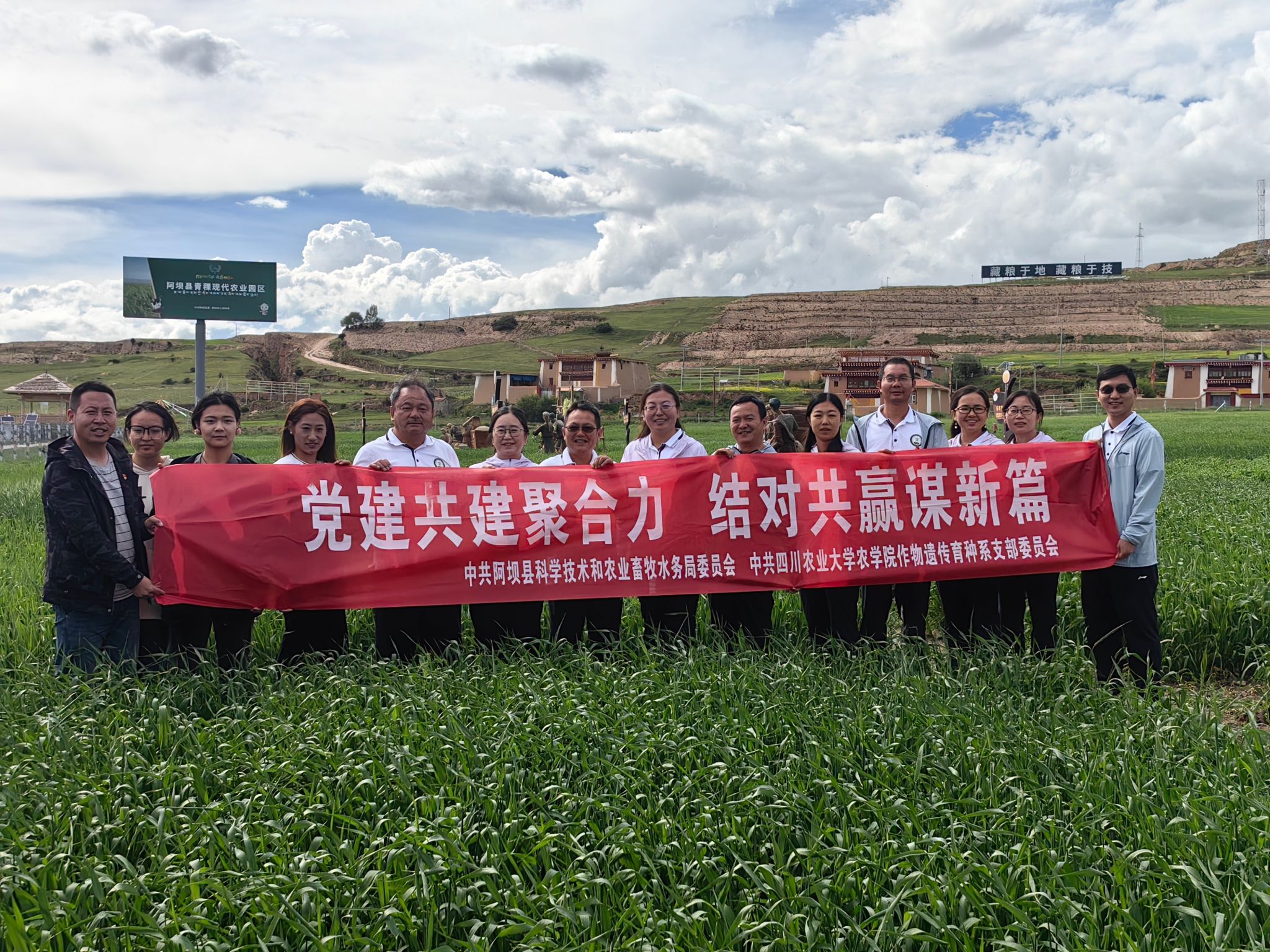 为庆祝中国共产党成立102周年,深刻领会习近平新时代中国特色社会主义思想,进一步加强党建引领高质量发展,促进校地合作融合,2023年7月1日,中共开云在线注册(中国)登录入口作物遗传育种系支部与中共阿坝县科学技术和农业畜牧税务局机关支部在阿坝县开展“党建共建聚合力,结对共赢谋新篇”主题教育活动。