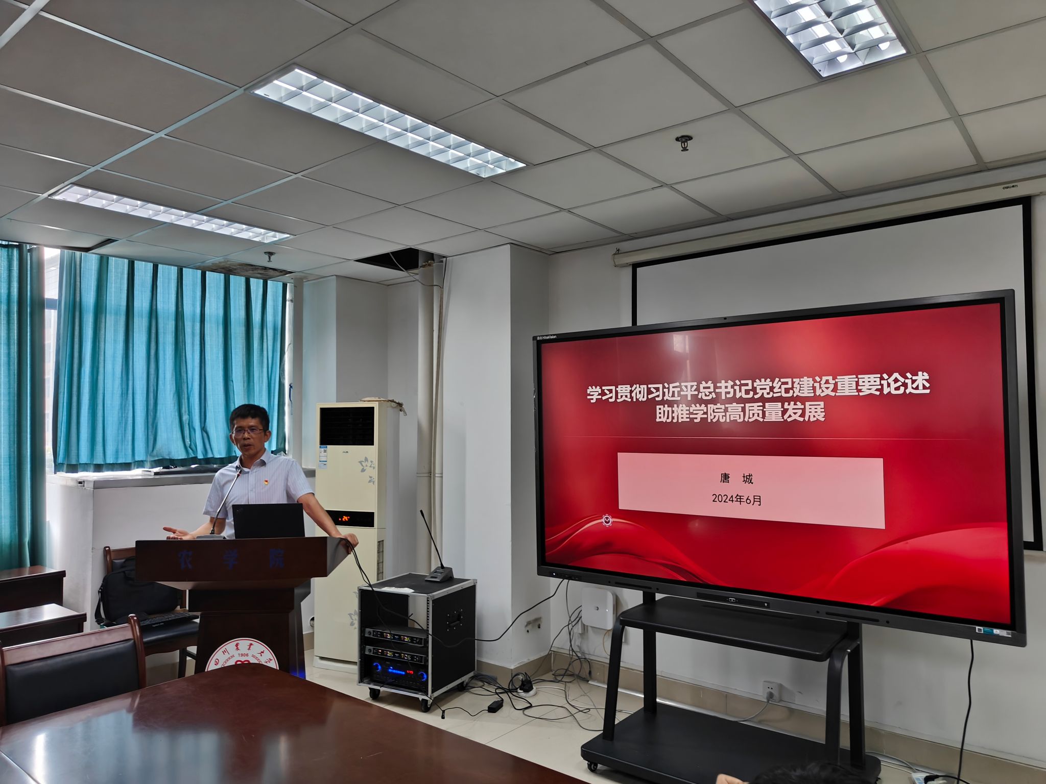 6月25日下午,开云在线注册(中国)登录入口在7教405会议室召开了党纪学习教育警示教育大会,这是学院党委为加强党员干部的党纪学习教育、提高党性修养而采取的一项重要举措。会议由党委书记唐城主持,全体教工党员参加。