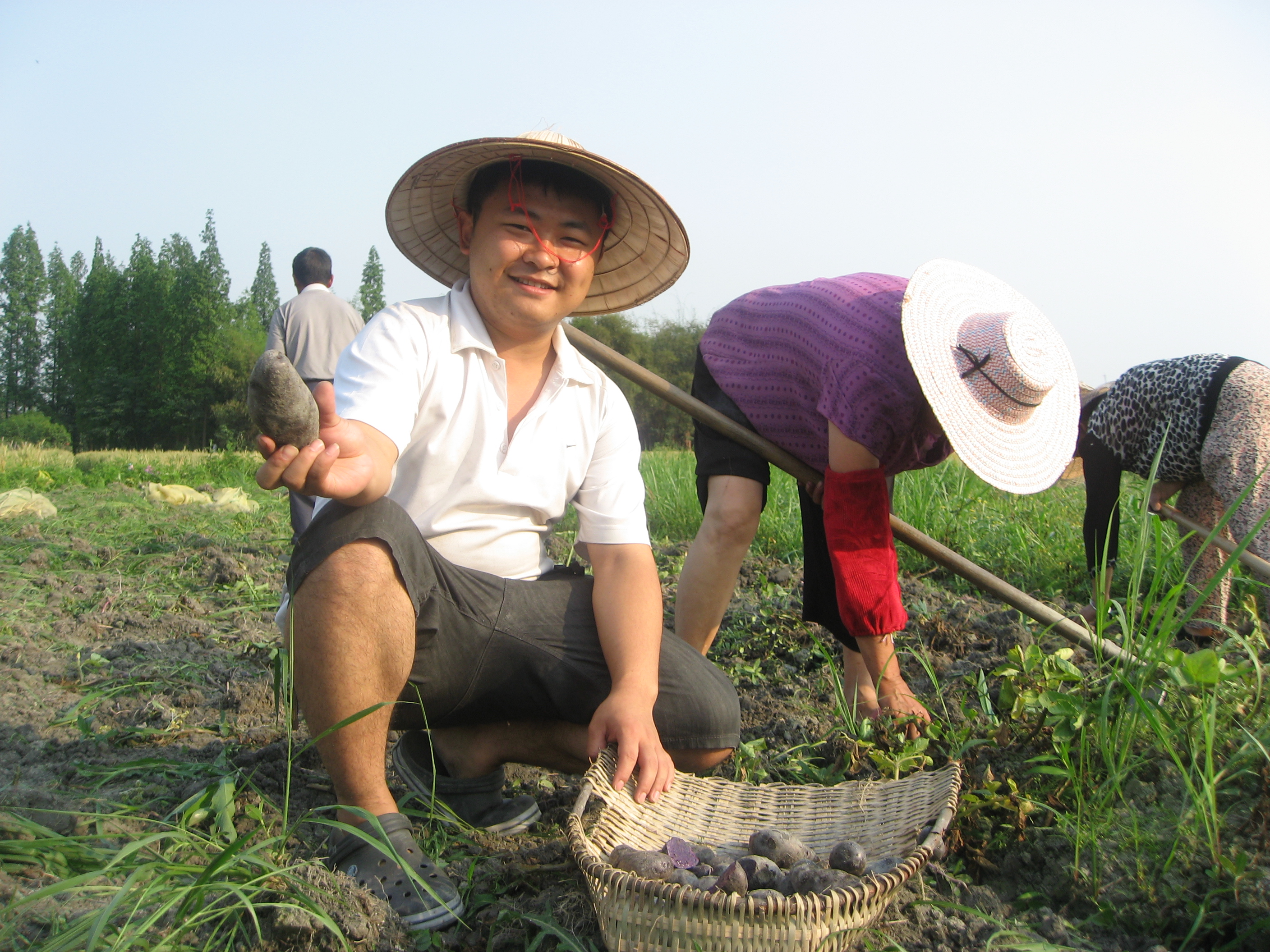 刘一盛去年毕业,也选择农村创业,一个身份是成都温江区万春镇“大学生村官”,另一个身份是一家农业科技公司董事长,妻子任总经理,是他四川农业大学研究生同学,两口子指导全省四五个区县上千农民种紫色土豆——价格为普通土豆5到8倍,去年公司纯收入40万元。