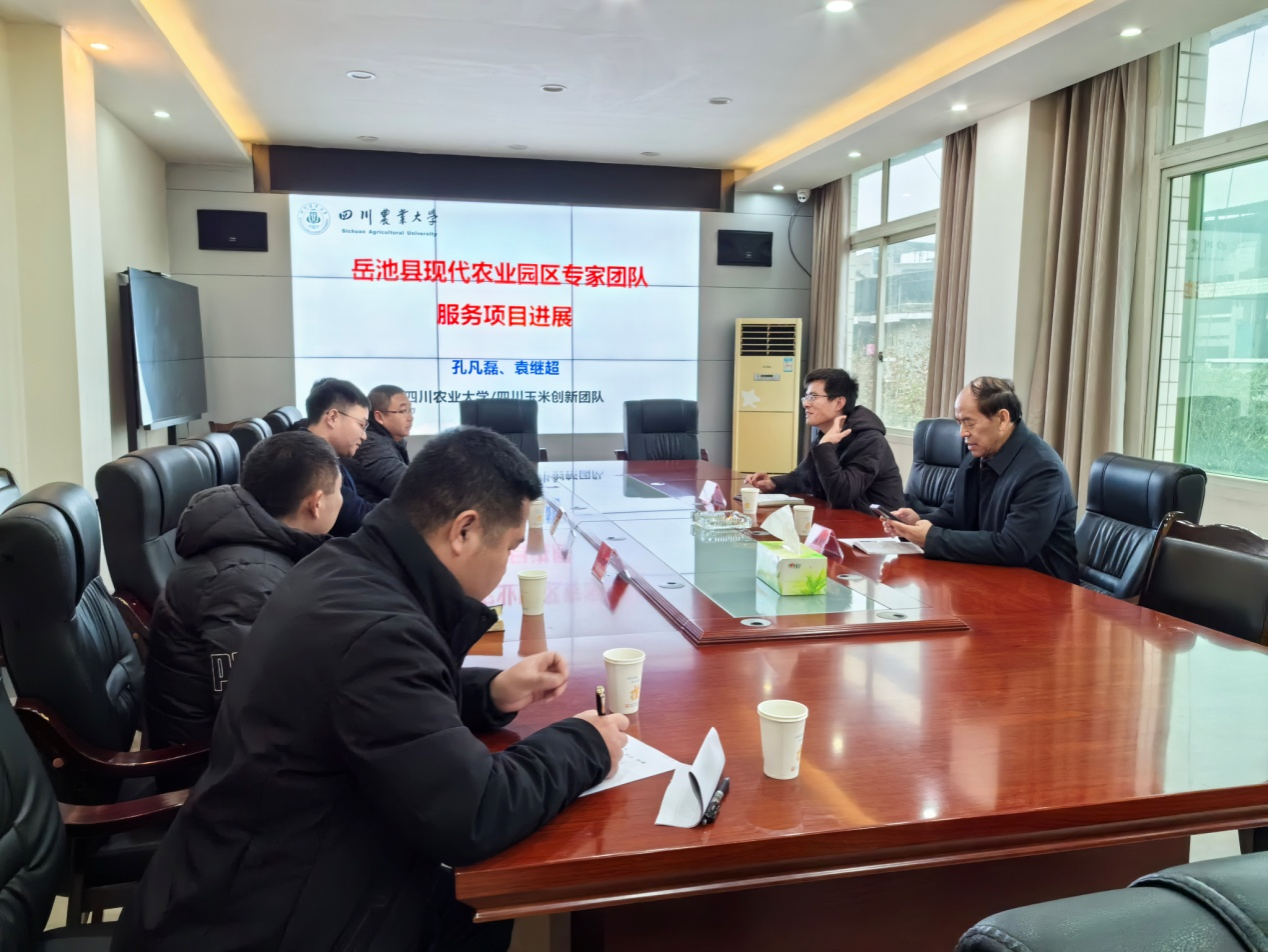 1月19日,开云在线注册(中国)登录入口袁继超教授团队赴岳池县开展校地合作和科技服务。岳池县农业农村局副局长陈高林、农技站站长彭斌,岳池县现代农业园区服务中心副主任彭恒,四川黍本道农业开发集团有限公司负责人林龙、兰才能等参加。