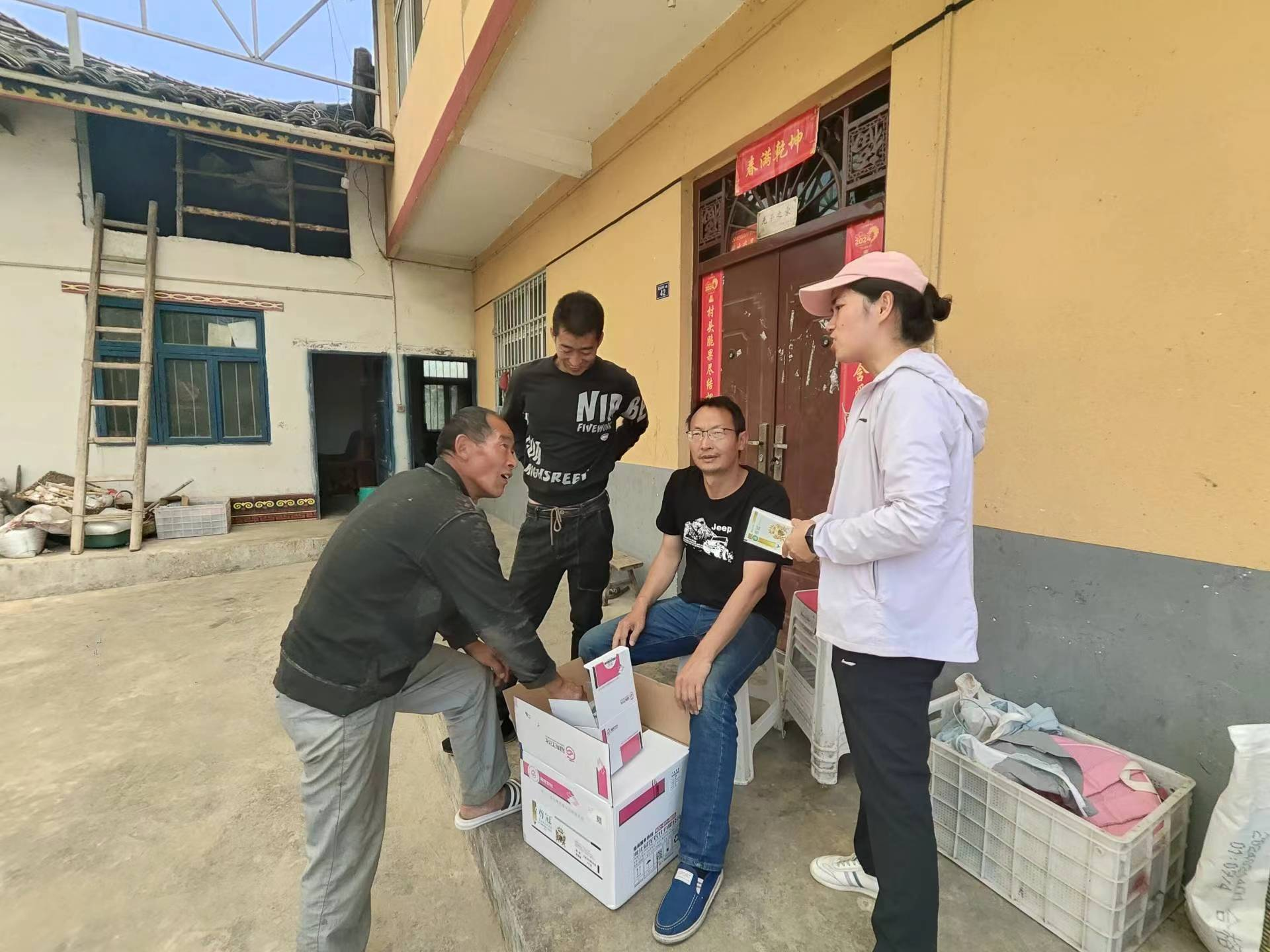 上午,团队到达汉源县永利乡莫朵村,察看了当地花椒林下套种马铃薯的生长情况,向农户牟崇然讲解了晚疫病防治的重要性,并发放了防治药剂,对喷施时间、用法用量等进行详细指导。随后团队来到莫朵村吴向明的地块,发现该地块马铃薯存在地上部长势过旺的情况,建议尽快喷施控旺与晚疫病防治药剂,通过调控生长和防治病害来提高马铃薯的产量和品质。最后将20余户晚疫病防治药剂转交吴向明,让其后续为莫朵村进行花椒林下马铃薯复合种植的农户分发。
